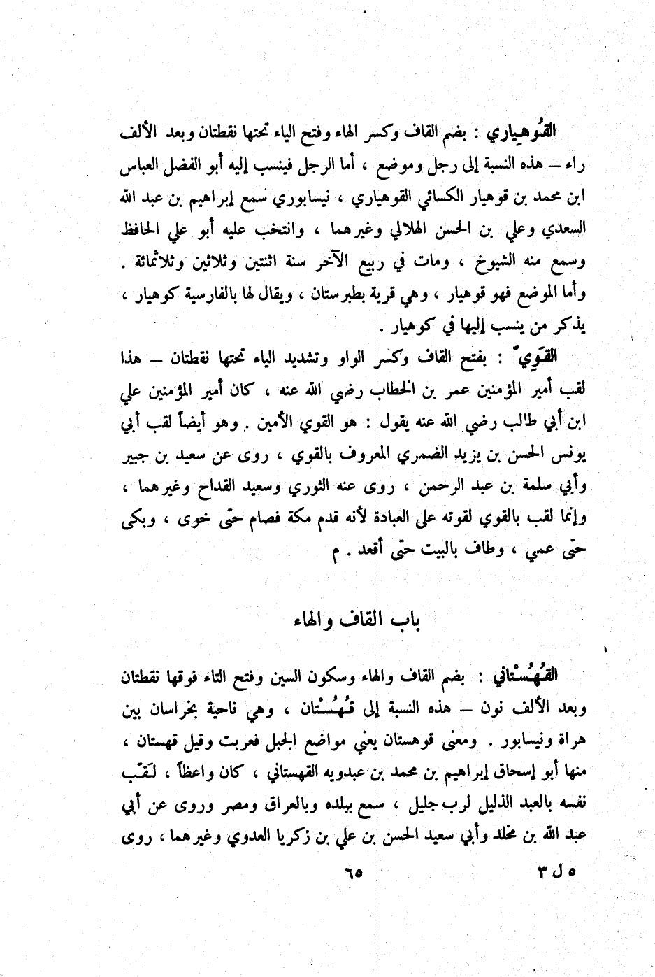 القوهياري بِضَم الْقَاف وَكسر الْهَاء وَفتح الْيَاء تحتهَا نقطتان وَبعد الْألف رَاء هَذِه النِّسْبَة إِلَى رجل وَمَوْضِع أما الرجل فينسب إِلَيْهِ أَبُو الْفضل الْعَبَّاس ابْن مُحَمَّد بن قوهيار الْكسَائي القوهياري نيسابوري سمع إِبْرَاهِيم بن عبد الله السَّعْدِيّ وَعلي بن الْحسن الْهِلَالِي وَغَيرهمَا وانتخب عَلَيْهِ أَبُو عَليّ الْحَافِظ وَسمع مِنْهُ الشُّيُوخ وَمَات فِي ربيع الآخر سنة اثْنَتَيْنِ وَثَلَاثِينَ وثلاثمائة وَأما الْموضع فَهُوَ قوهيار وَهِي قَرْيَة بطبرستان وَيُقَال لَهَا بِالْفَارِسِيَّةِ كوهيار يذكر من ينْسب إِلَيْهَا فِي كوهيار