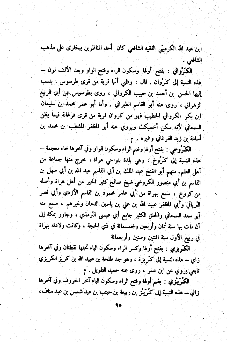 الكريزي بِضَم أَولهَا وَفتح الرَّاء وَسُكُون الْيَاء آخر الْحُرُوف وَفِي آخرهَا زَاي هَذِه النِّسْبَة إِلَى كريز بن ربيعَة بن حبتب بن عبد شمس بن عبد منَاف