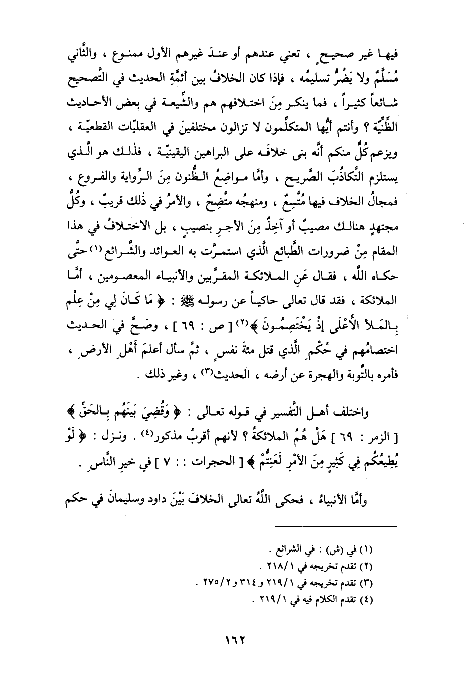 فيها غير صحيحٍ، تعني عندهم أو عندَ غيرهم الأول ممنوع، والثَّاني مُسَلَّمٌ ولا يضُرُّ تسليمُه، فإذا كان الخلافُ بين أئمَّةِ الحديث في التَّصحيح شائعاً كثيراً، فما ينكر منَ اختلافهم هم والشِّيعة في بعض الأحاديث الظِّنِّيّة؟ وأنتم أيُّها المتكلِّمون لا تزالون مختلفينَ في العقليّات القطعيّة، ويزعم كُلٌّ منكم أنَّه بنى خلافَه على البراهين اليقينيّة، فذلك هو الَّذي يستلزم التَّكاذبَ الصَّريح، وأمَّا مواضِعُ الظُّنون مِنَ الرِّواية والفروع، فمجالُ الخلاف فيها مُتَّسِعٌ، ومنهجُه متَّضِحٌ، والأمرُ في ذلك قريبٌ، وكُلُّ مجتهدٍ هنالك مصيبٌ أو آخِذٌ مِنَ الأجرِ بنصيبٍ، بل الاختلافُ في هذا المقام مِنْ ضرورات الطَّبائع الذي استمرَّت به العوائد والشَّرائع (¬1) حتَّى حكاه الله، فقال عَنِ الملائكة المقرَّبين والأنبياء المعصومين، أمَّا الملائكة، فقد قال تعالى حاكياً عن رسوله - صلى الله عليه وسلم -: {مَا كَانَ لِيَ مِنْ عِلْمٍ بِالْمَلَإِ الْأَعْلَى إِذْ يَخْتَصِمُونَ} (¬2) [ص: 69]، وصَحَّ في الحديث اختصامُهم في حُكْمِ الذي قتل مئةَ نفسٍ، ثمَّ سأل أعلمَ أَهْلِ الأرضِ، فأمره بالتَّوبة والهجرة عن أرضه، الحديث (¬3)، وغير ذلك.