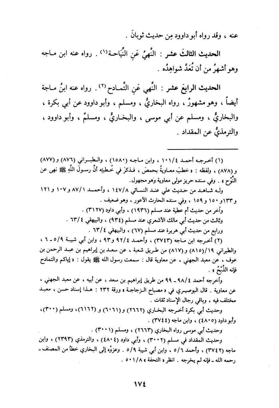 الحديث الثالثَ عشر. النَّهيُ عَنِ النِّيَاحة (¬1). رواه عنه ابن ماجه وهو أشهر من أن تُعَدَّ شواهِدُه.