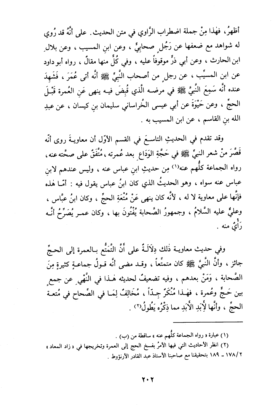 (¬2) انظر الأحاديث التي فيها الأمرُ بفسخ الحج إلى العمرة وتخريجها في " زاد المعاد " 2/ 178 - 189 بتحقيقنا مع صاحبنا الأستاذ عبد القادر الأرنؤوط.