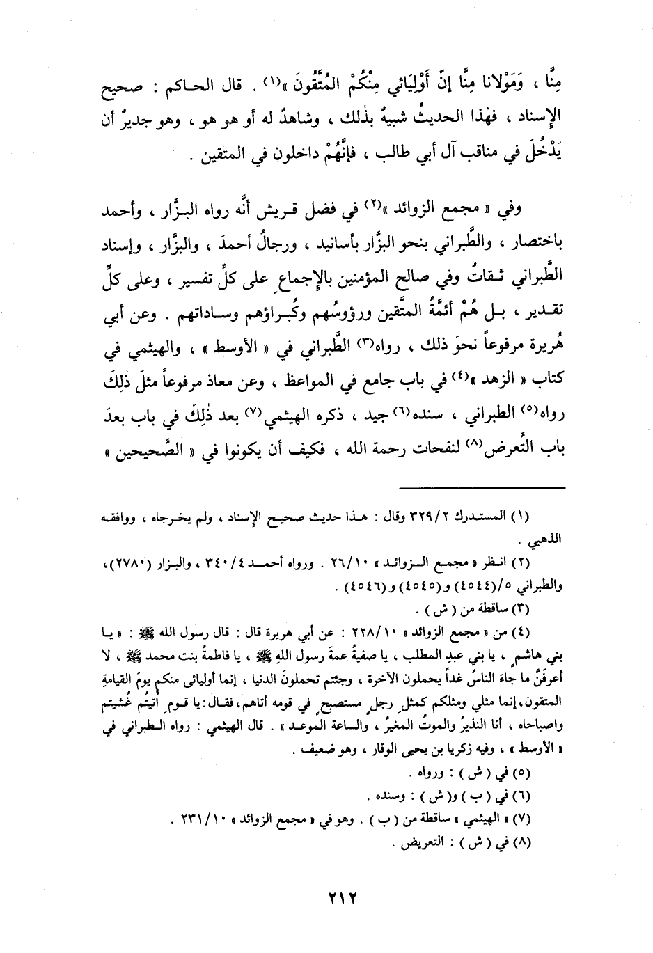 منَّا، وَموْلانا مِنَّا إنّ أَوْليَائي مِنْكمْ المُتَّقُونَ" (¬1). قال الحاكم: صحيح الإسناد، فهذا الحديثُ شبيهٌ بذلك، وشاهدٌ له أو هو هو، وهو جديرٌ أن يَدْخُلَ في مناقب آل أبي طالب، فإنَّهُمْ داخلون في المتقين.