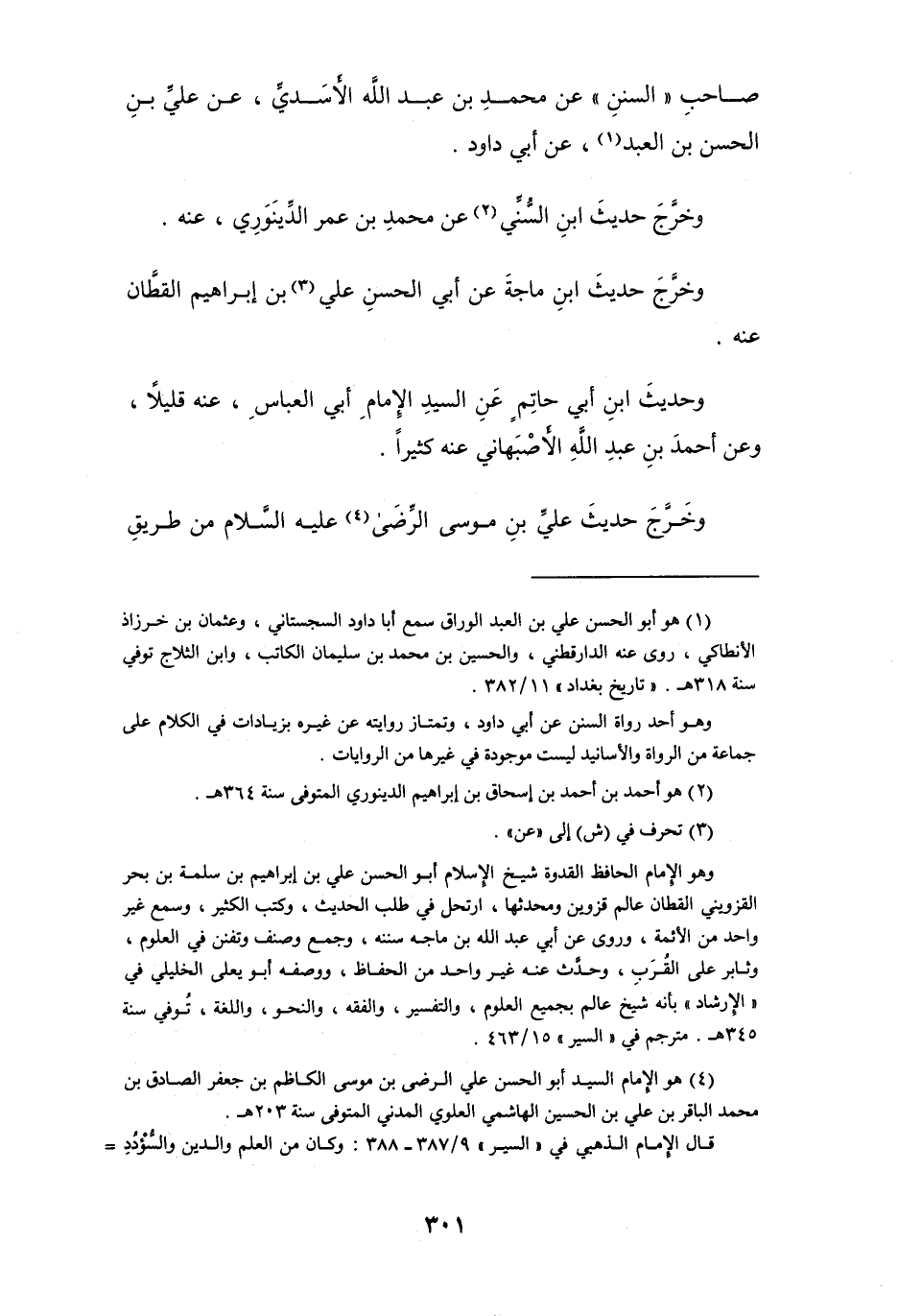(¬4) هو الإمام السَّيِّد أبو الحسن علي الرضى بن موسى الكاظم بن جعفر الصادق بن محمد الباقر بن علي بن الحسين الهاشمي العلوي المدني المتوفى سنة 203 هـ.