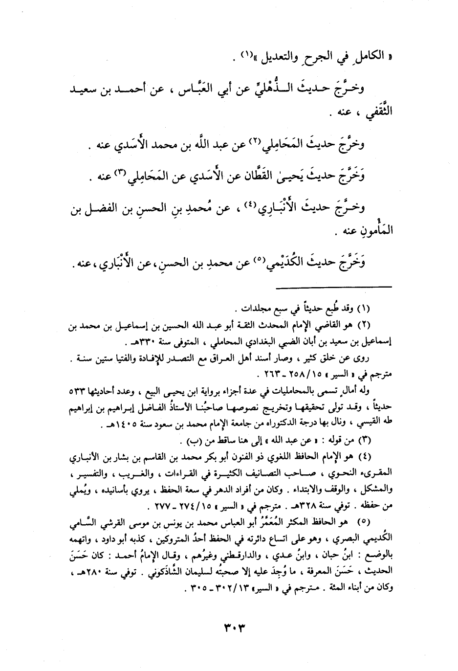 (¬2) هو القاضي الإمام المحدث الثقة أبو عبد الله الحسين بن إسماعيل بن محمد بن إسماعيل بن سعيد بن أبان الضبي البغدادي المحاملي، المتوفى سنة 330 هـ.