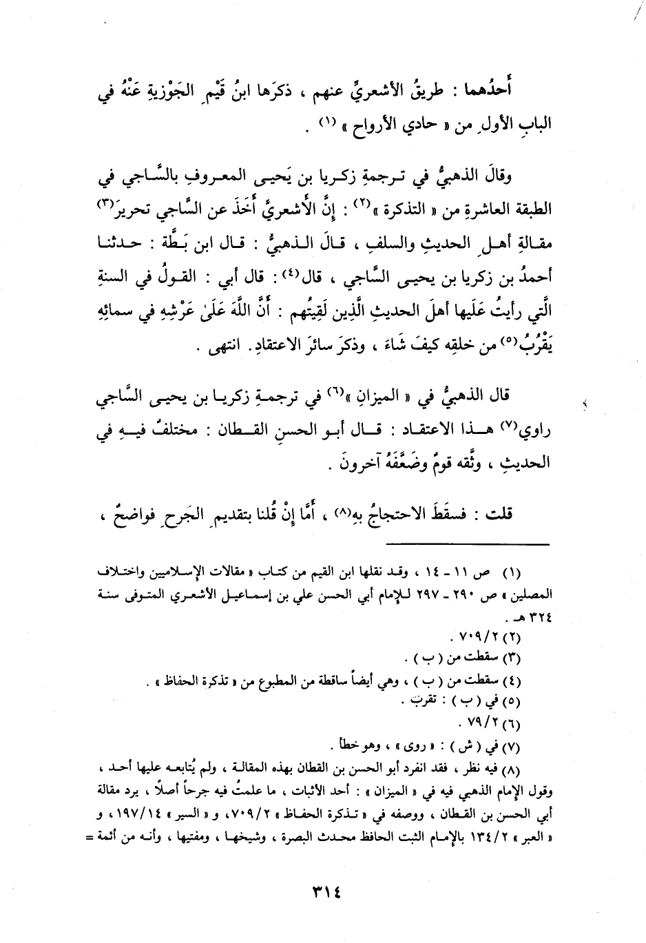 قال الذهبيُّ في " الميزانِ " (¬6) في ترجمةِ زكريا بن يحيى السَّاجي راوي (¬7) هذا الاعتقاد: قال أبو الحسنِ القطان: مختلفٌ فيهِ في الحديثِ، وثَّقه قومٌ وضَعَّفَهُ آخرونَ.