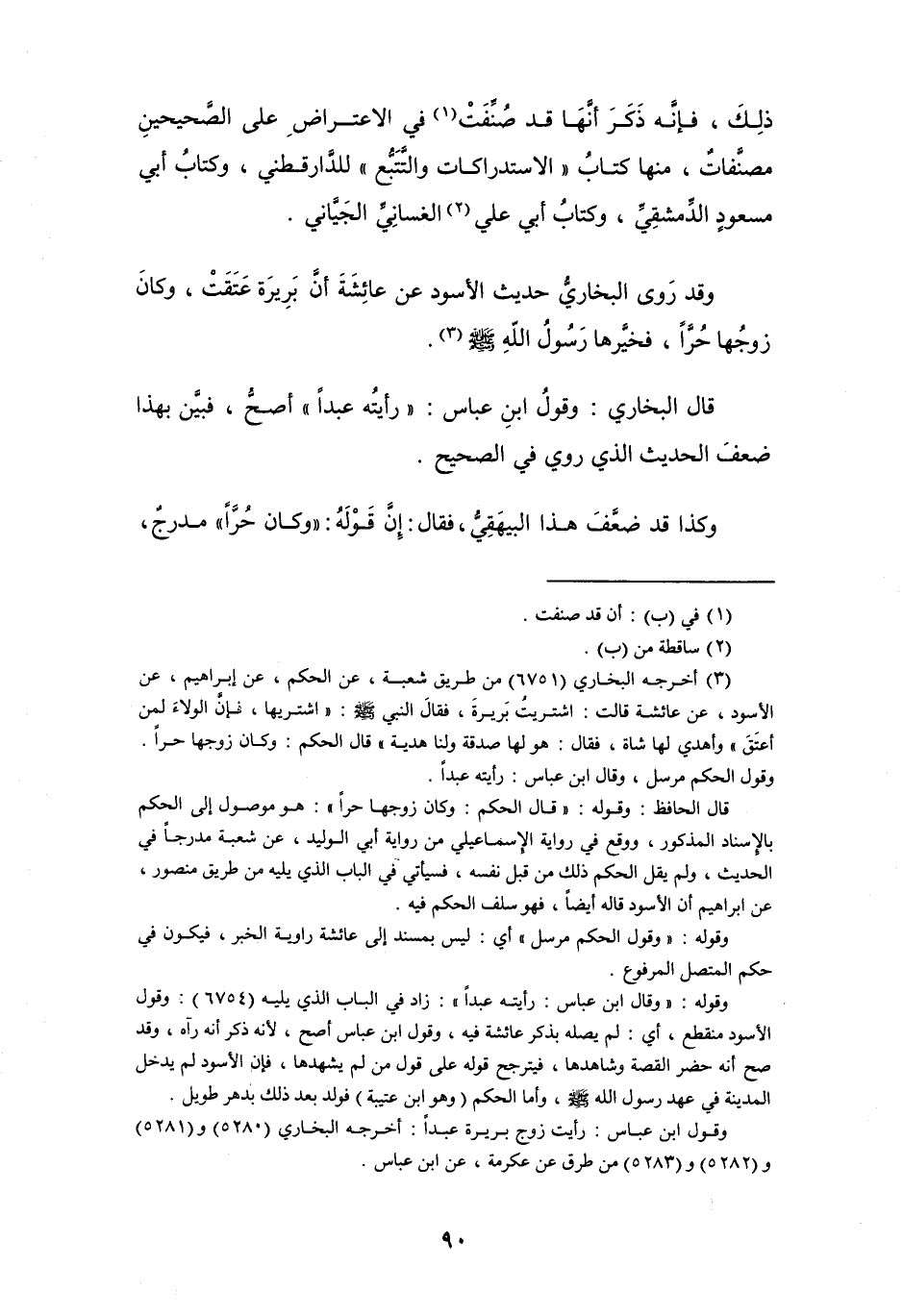 وقد رَوى البخاريُّ حديث الأسود عن عائِشَةَ أنَّ بَرِيرة عَتَقَتْ، وكان زوجُها حُرَّاً، فخيَّرها رَسُولُ اللهِ - صلى الله عليه وسلم - (¬3).