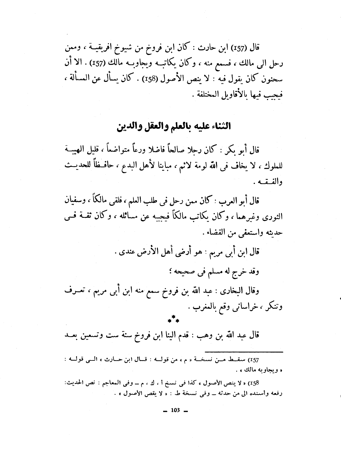 مالك، إلا أن سحنون كان يقول فيه: لا ينص الأصول، كان يسأل في المسألة فيجيب فيها بالأقاويل المختلفة.