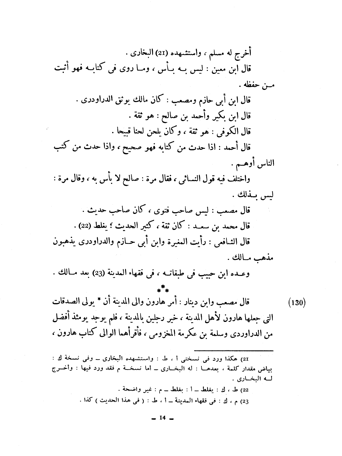 أخرج له مسلم وروى له البخاري، قال ابن معين ليس به بأس وما روى في كتابه فهو أثبت في حفظه. قال ابن أبي حازم ومصعب: كان مالك يوثق الدراوردي. قال ابن بكير وأحمد بن صالح هو ثقة. قال الكوفي: هو ثقة، وكان يلحن لحناً قبيحاً. قال أحمد: إذا حدث في كتابه فهو صحيح، وإذا حدث في كتب الناس أوهم. واختلف فيه قول النسائي فقال مرة ليس به بأس صالح. وقال مرة ليس بذاك. قال مصعب: ليس صاحب فتوى، كان صاحب حديث. قال محمد بن سعد: كان ثقة، كثير الحديث يغلط. قال الشافعي رأيت المغيرة وابن أبي حازم والدراوردي يذهبون مذهب مالك. وعده ابن حبيب في طبقاته خير فقهاء المدينة بعد مالك. قال مصعب وابن دينار: أمر هارون والي المدينة أن يولي الصدقات التي جعلها هارون لأهل المدينة خير رجلين بالمدينة، فلم يوجد يومئذ أفضل من الدراوردي وسلمة بن عكرمة المخزومي فأقرأهما الوالي كتاب هارون