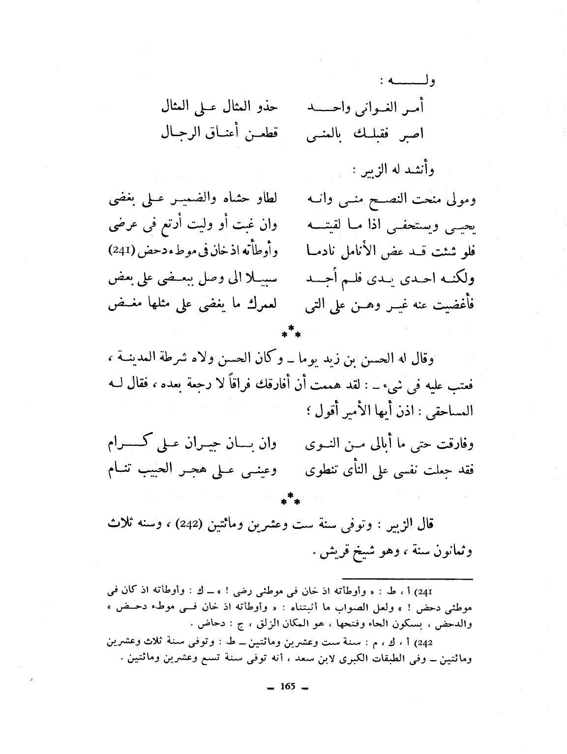 وأنشد له الزبير: