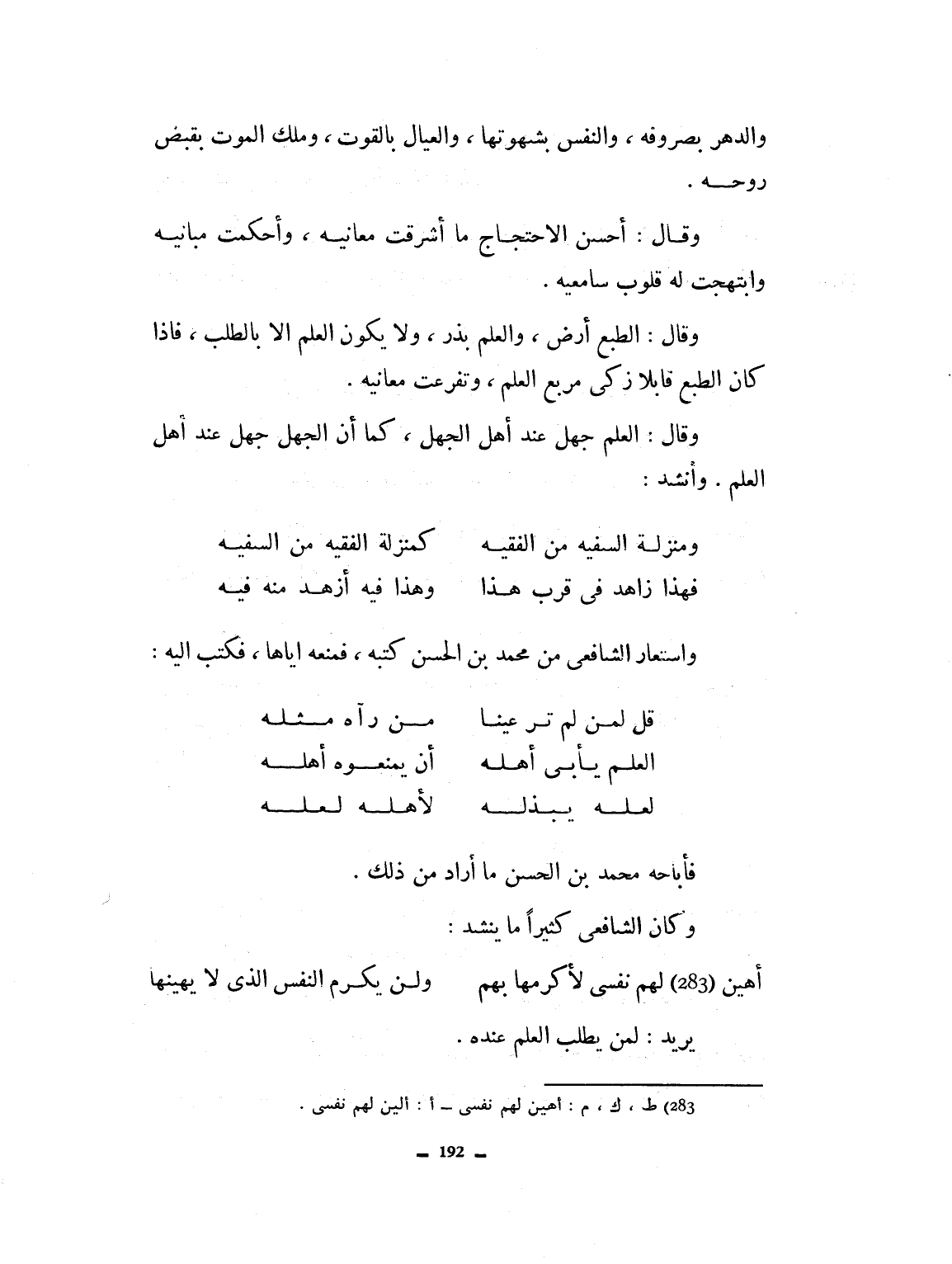 فأجابه محمد بن الحسن عن ذلك وكان الشافعي كثيراً ما ينشد: