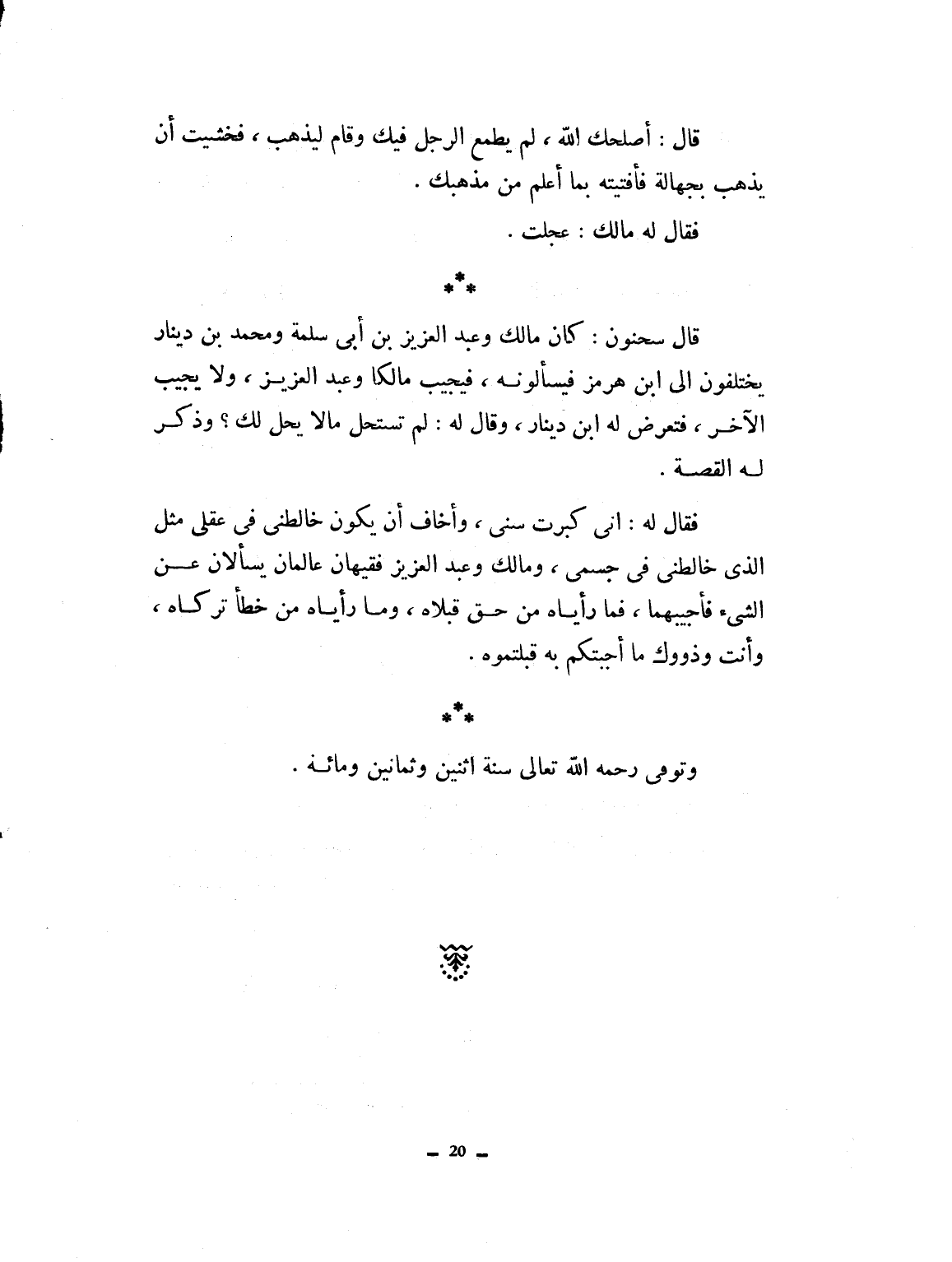 قال أصلحك الله لم يطمع الرجل فيك وقام ليذهب، فخشيت أن يذهب بحاله فأفتيته بما أعلم من مذهبك. فقال له مالك: عجلت.