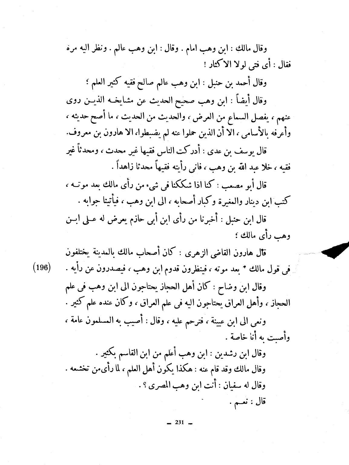 وقال مالك: ابن وهب إمام وقال: ابن وهب عالم ونظر إليه يوماً فقال: أي فتى لولا الإكثار.