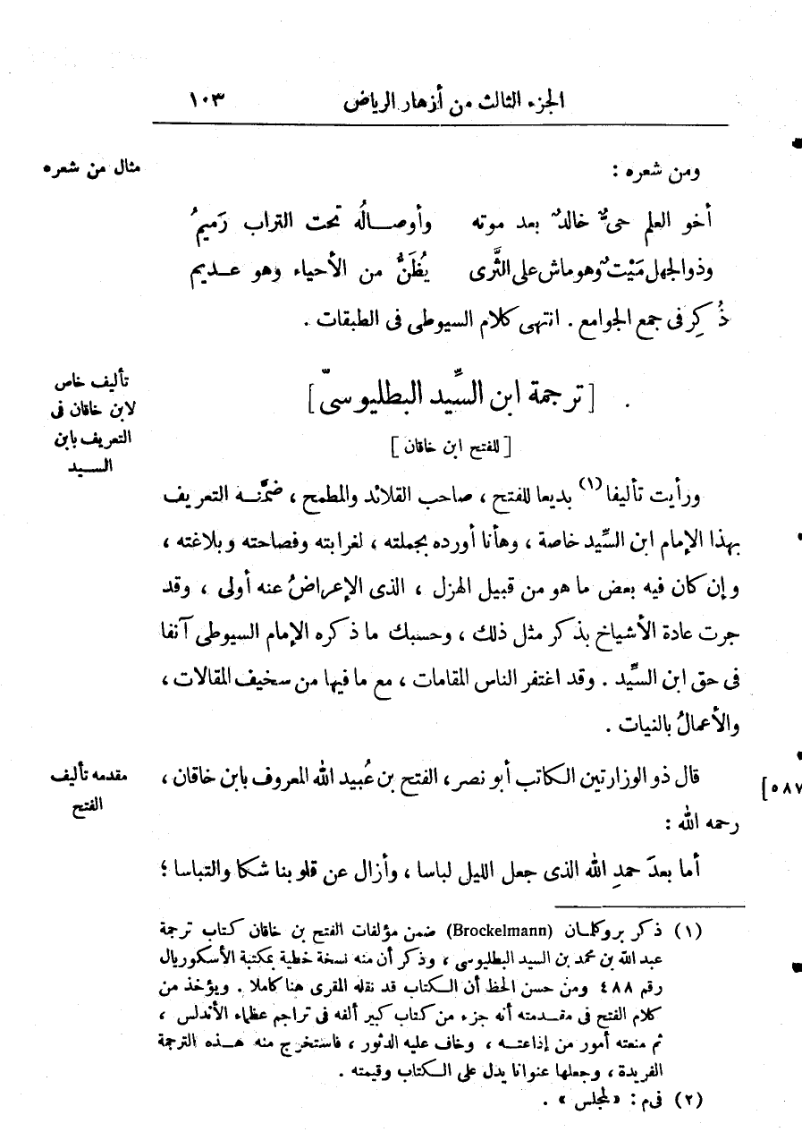 ترجمة ابن السيد البطليوسي للفتح بن خاقان.