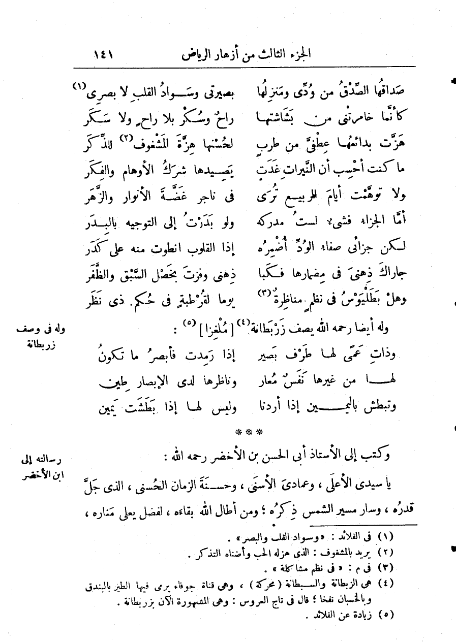 وله أيضاً رحمه الله يصف زربطانة ملغزا: