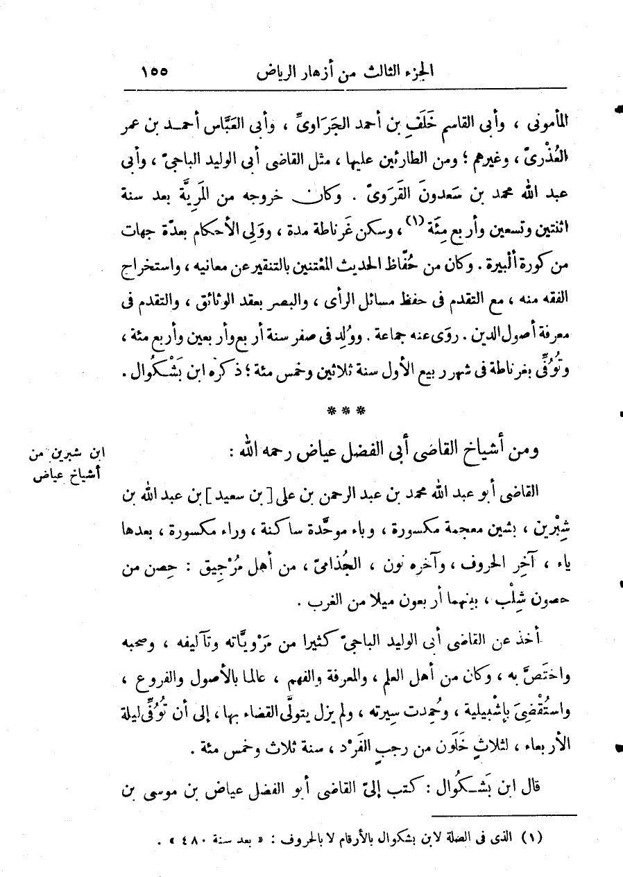 قال ابن بشكوال: كتب إليَّ القاضي أبو الفضل عياض بن موسى بن