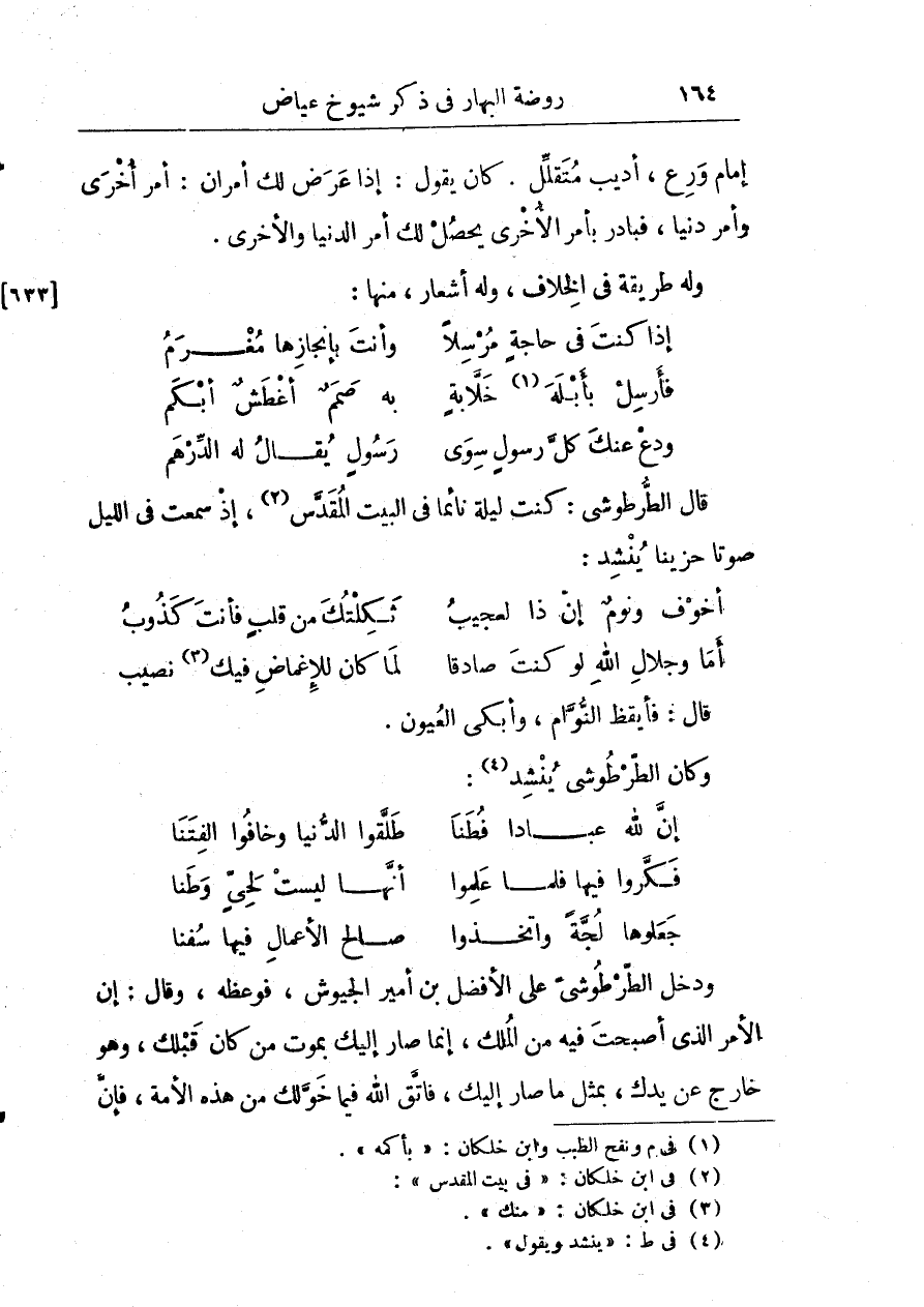 قال الطرطوشي: كنت ليلة نائما في البيت المقدس إذ سمعت في الليل صوتا حزينا ينشد: