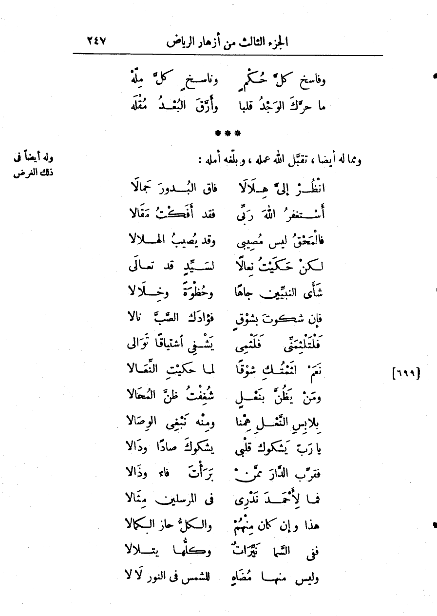 ومما له أيضاً تقبل الله عمله وبلغه أمله: