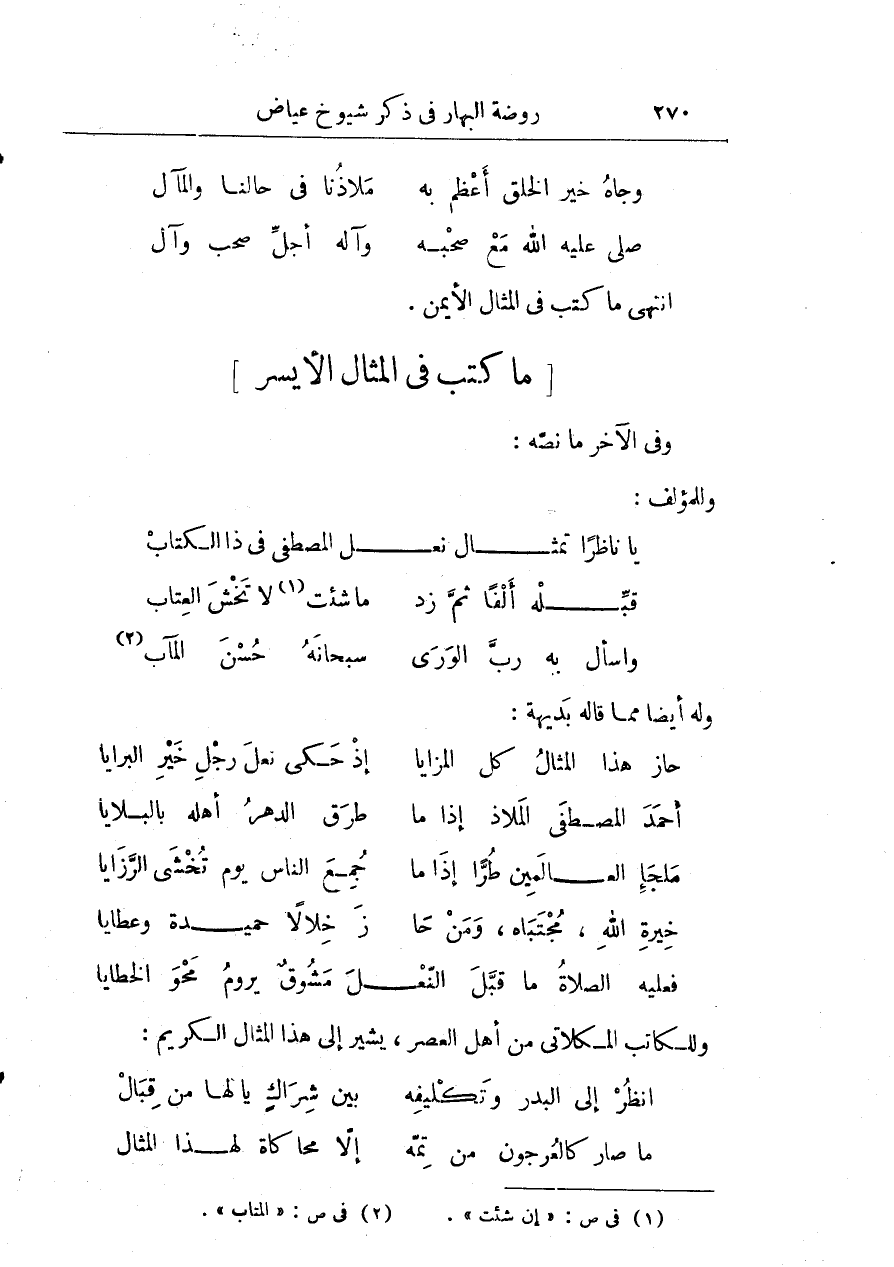 وللكاتب المكلاتي من أهل العصر يشير إلى هذا المثال الكريم: