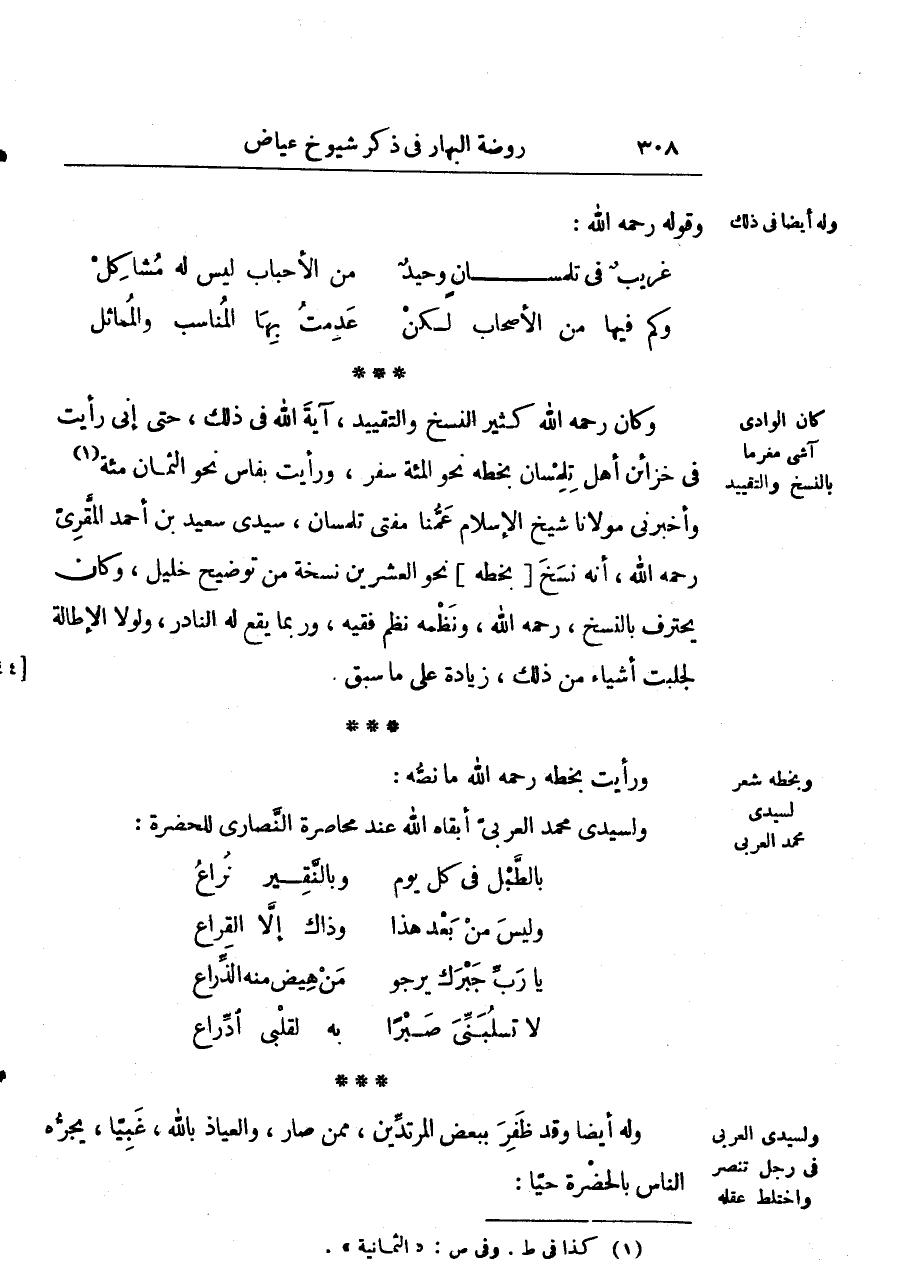 ورأيت بخطه رحمه الله ما نصه: ولسيدي محمّد العربي أبقاه الله عند محاصرة النصارى للحضرة: