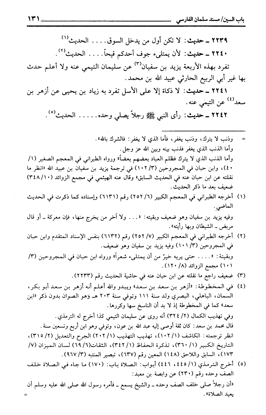 2241 - حَدِيث: لَا ذَكَاة إِلَّا على الأسل تفرد بِهِ زِيَاد بن يحيى عَن أَزْهَر بن سعد عَن التَّيْمِيّ عَنهُ.