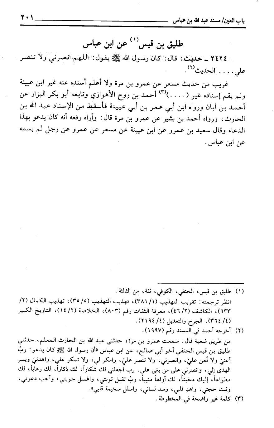 2424 - حَدِيث: قَالَ: كَانَ رَسُول الله يَقُول: اللَّهُمَّ انصرني وَلَا تنصر عَليّ ... الحَدِيث.