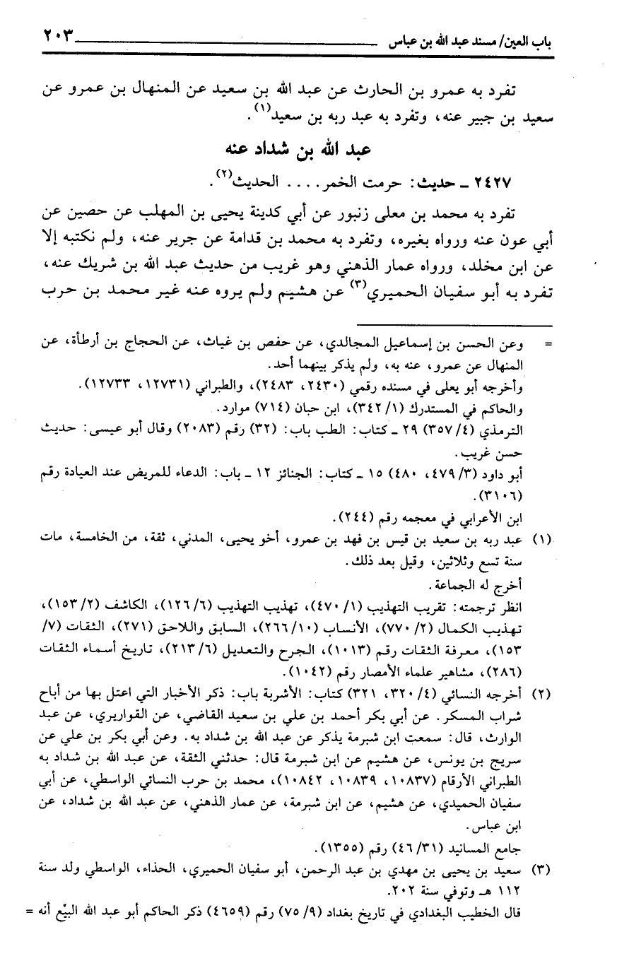 تفرد بِهِ مُحَمَّد بن مُعلى زنبور عَن أبي كُدَيْنَة يحيى بن الْمُهلب عَن حُصَيْن عَن أبي عون عَنهُ وَرَوَاهُ بِغَيْرِهِ، وَتفرد بِهِ مُحَمَّد بن قدامَة عَن جرير عَنهُ، وَلم نَكْتُبهُ إِلَّا عَن ابْن مخلد، وَرَوَاهُ عمار الذهْنِي وَهُوَ غَرِيب من حَدِيث عبد الله بن شريك عَنهُ، تفرد بِهِ أَبُو سُفْيَان الْحِمْيَرِي عَن هشيم وَلم يروه عَنهُ غير مُحَمَّد بن حَرْب
