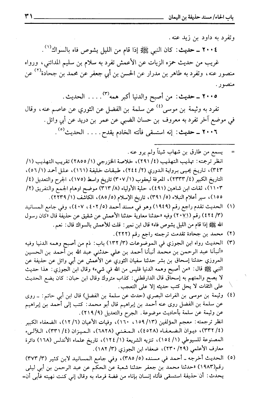2004 - حَدِيث: كَانَ النَّبِي إِذا قَامَ من اللَّيْل يشوص فَاه بِالسِّوَاكِ.