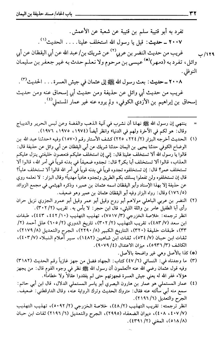 غَرِيب من حَدِيث النَّضر بن عَرَبِيّ عَن شريك بن / عبد الله عَن أبي الْيَقظَان عَن أبي وَائِل، تفرد بِهِ (دمهر) عِيسَى بن مَرْحُوم وَلَا نعلم حدث بِهِ غير جَعْفَر بن سُلَيْمَان النَّوْفَلِي.