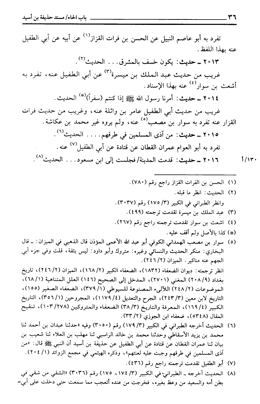 غَرِيب من حَدِيث أبي الطُّفَيْل عَامر بن وَاثِلَة عَنهُ، وغريب من حَدِيث فرات القزار عَنهُ تفرد بِهِ سوار بن مُصعب عَنهُ، وَلم يروه غير مُحَمَّد بن عكاشة.