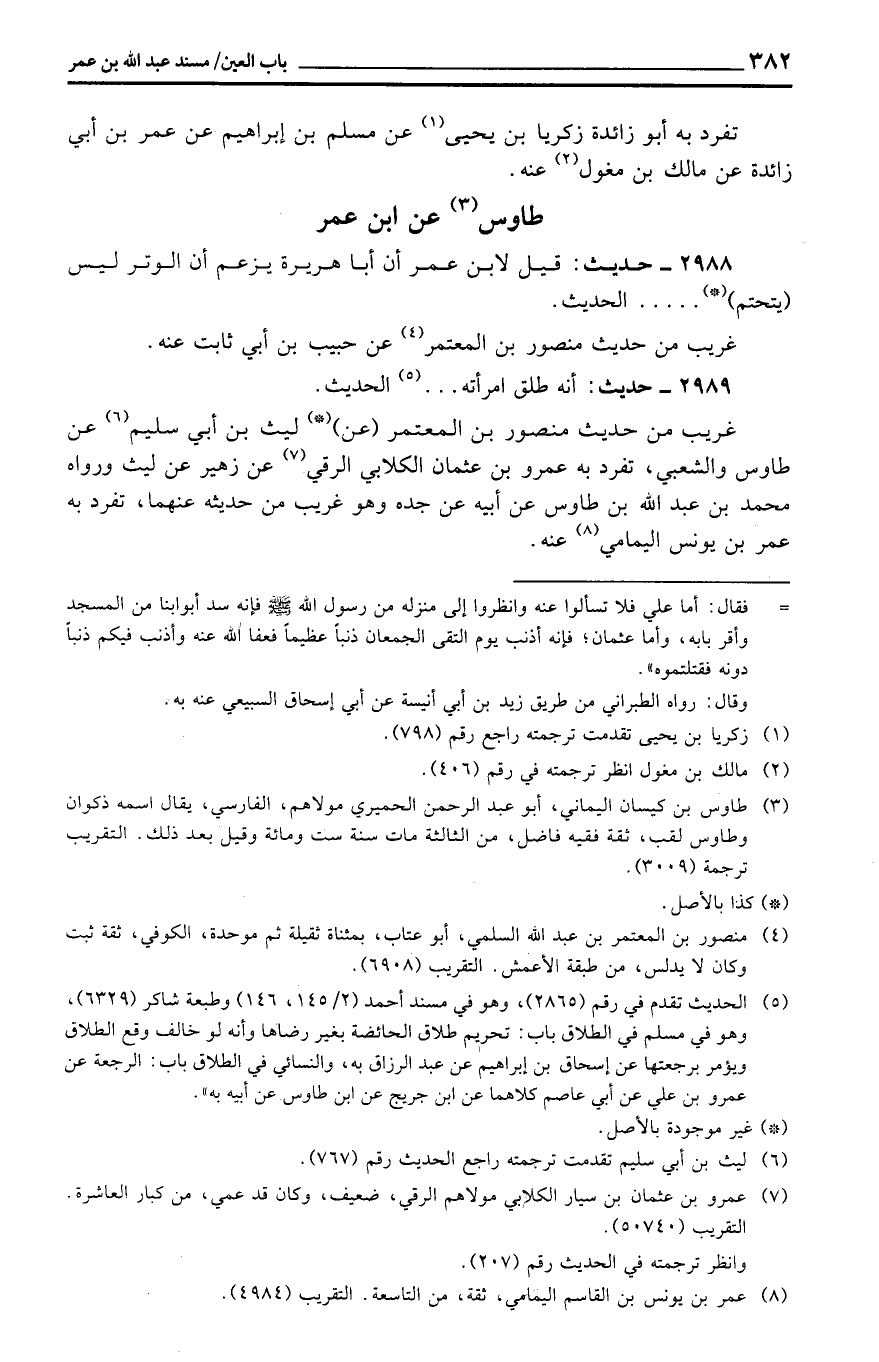 2988 - حَدِيث: قيل لِابْنِ عمر أَن أَبَا هُرَيْرَة يزْعم أَن الْوتر لَيْسَ (يتحتم)