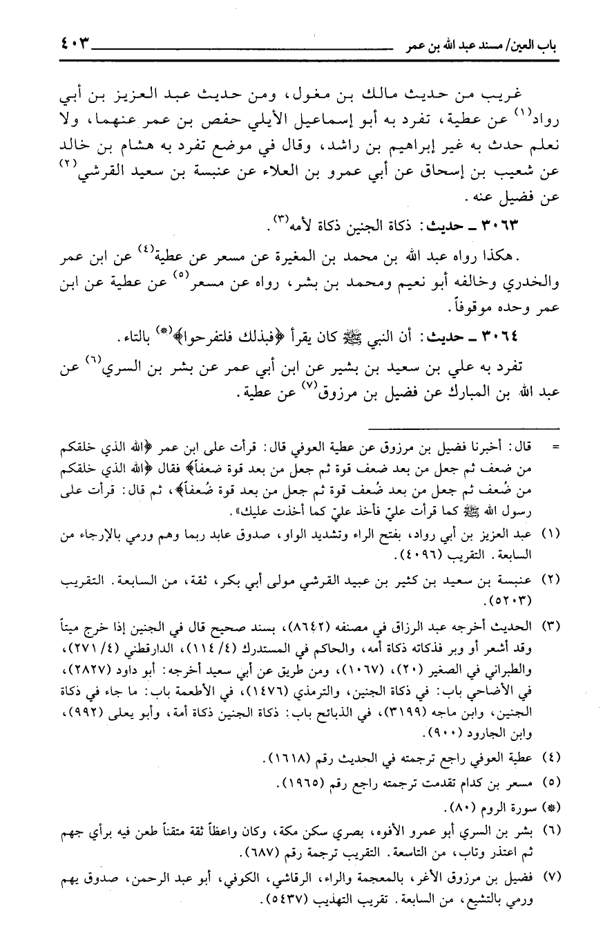 تفرد بِهِ عَليّ بن سعيد بن بشير عَن ابْن أبي عمر عَن بشر بن السّري عَن عبد الله بن الْمُبَارك عَن فُضَيْل بن مَرْزُوق عَن عَطِيَّة.