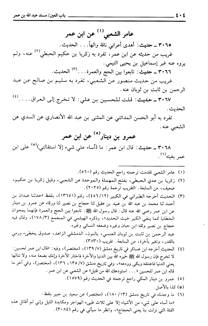 عَامر الشّعبِيّ عَن ابْن عمر