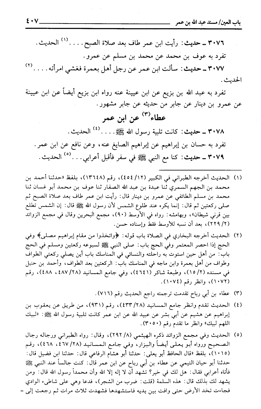 3077 - حَدِيث: سَأَلت ابْن عمر عَن رجل أهل بِعُمْرَة فَغشيَ امْرَأَته