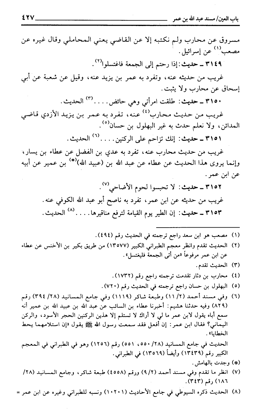 مَسْرُوق عَن محَارب وَلم نَكْتُبهُ إِلَّا عَن القَاضِي يَعْنِي الْمحَامِلِي وَقَالَ غَيره عَن مُصعب عَن إِسْرَائِيل.