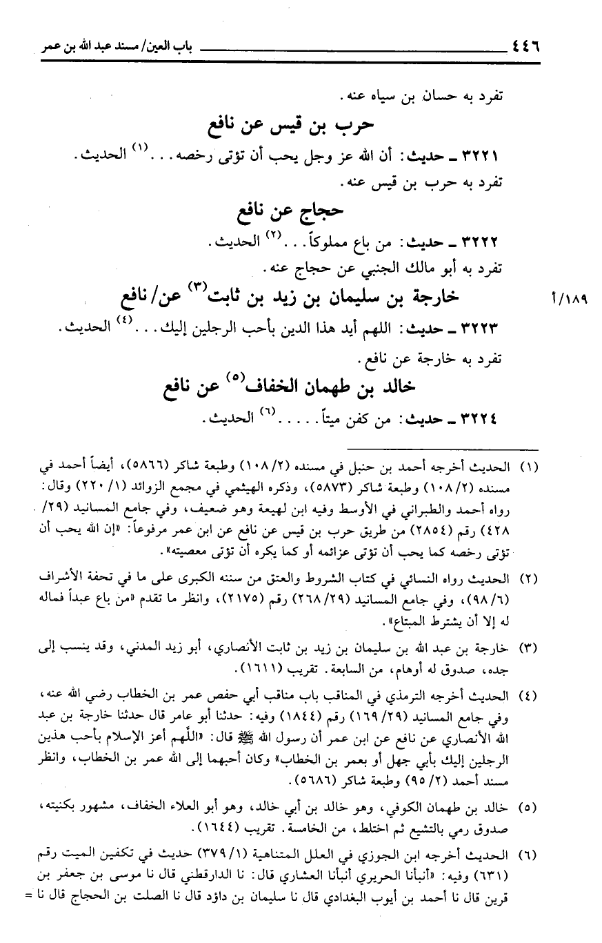 خَارِجَة بن سُلَيْمَان بن زيد بن ثَابت عَن / نَافِع