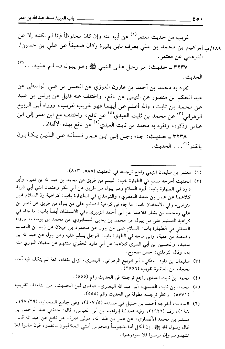 3238 - حَدِيث: جَاءَ رجل إِلَى ابْن عمر فَسَأَلَهُ عَن الَّذين يكذبُون بِالْقدرِ