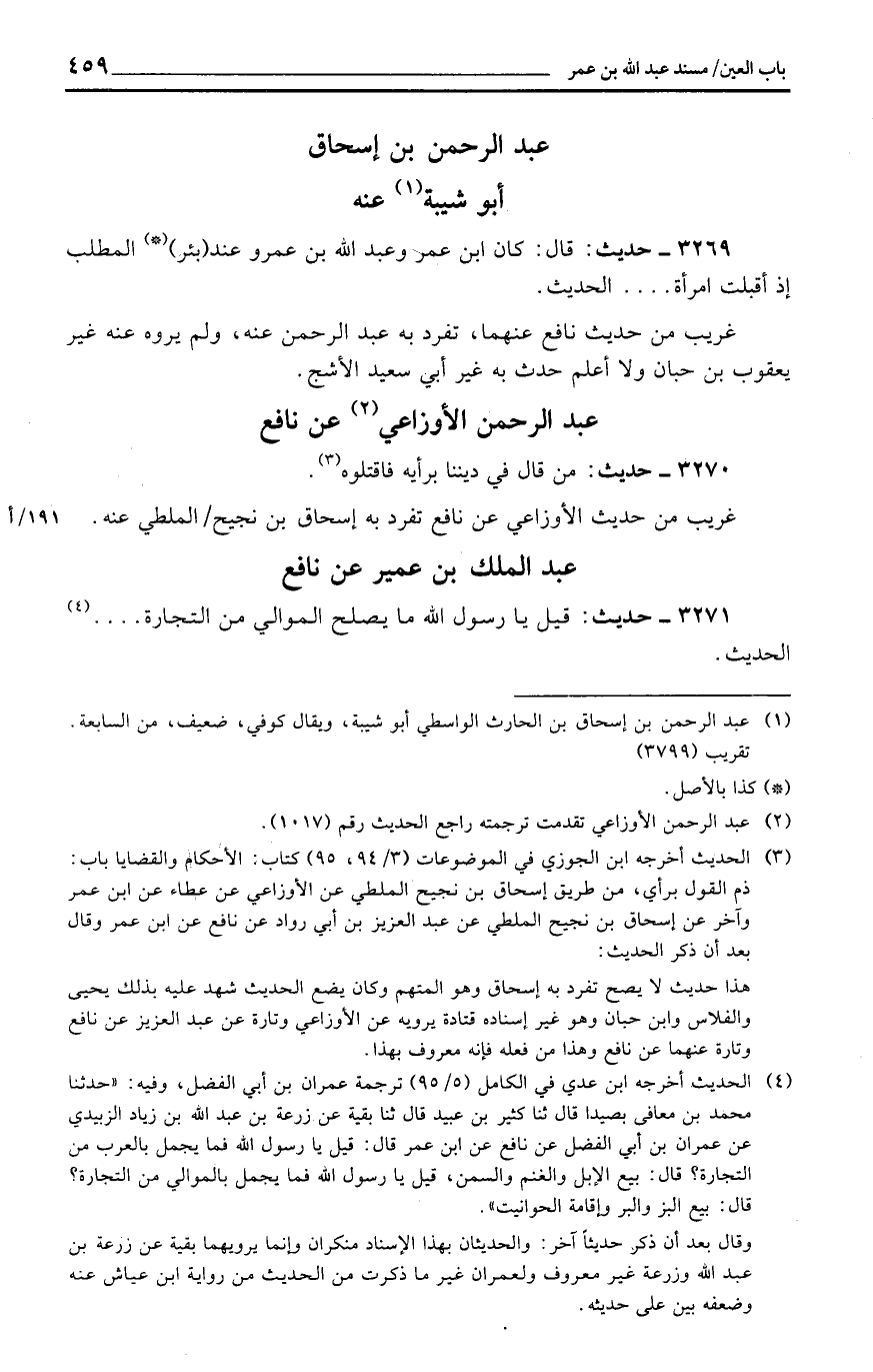 عبد الرَّحْمَن الْأَوْزَاعِيّ عَن نَافِع