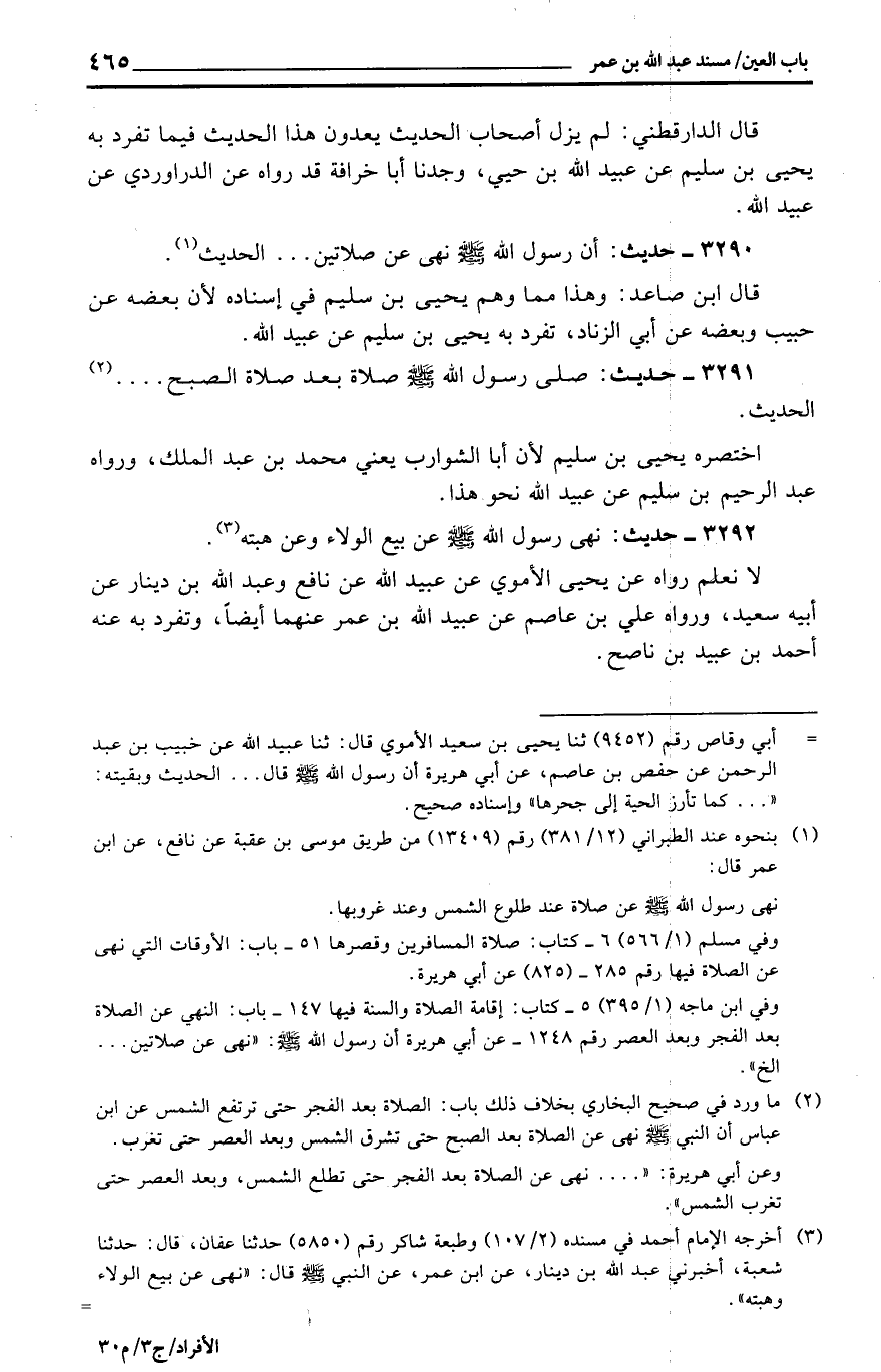 3290 - حَدِيث: أَن رَسُول الله نهى عَن صَلَاتَيْنِ ... الحَدِيث.