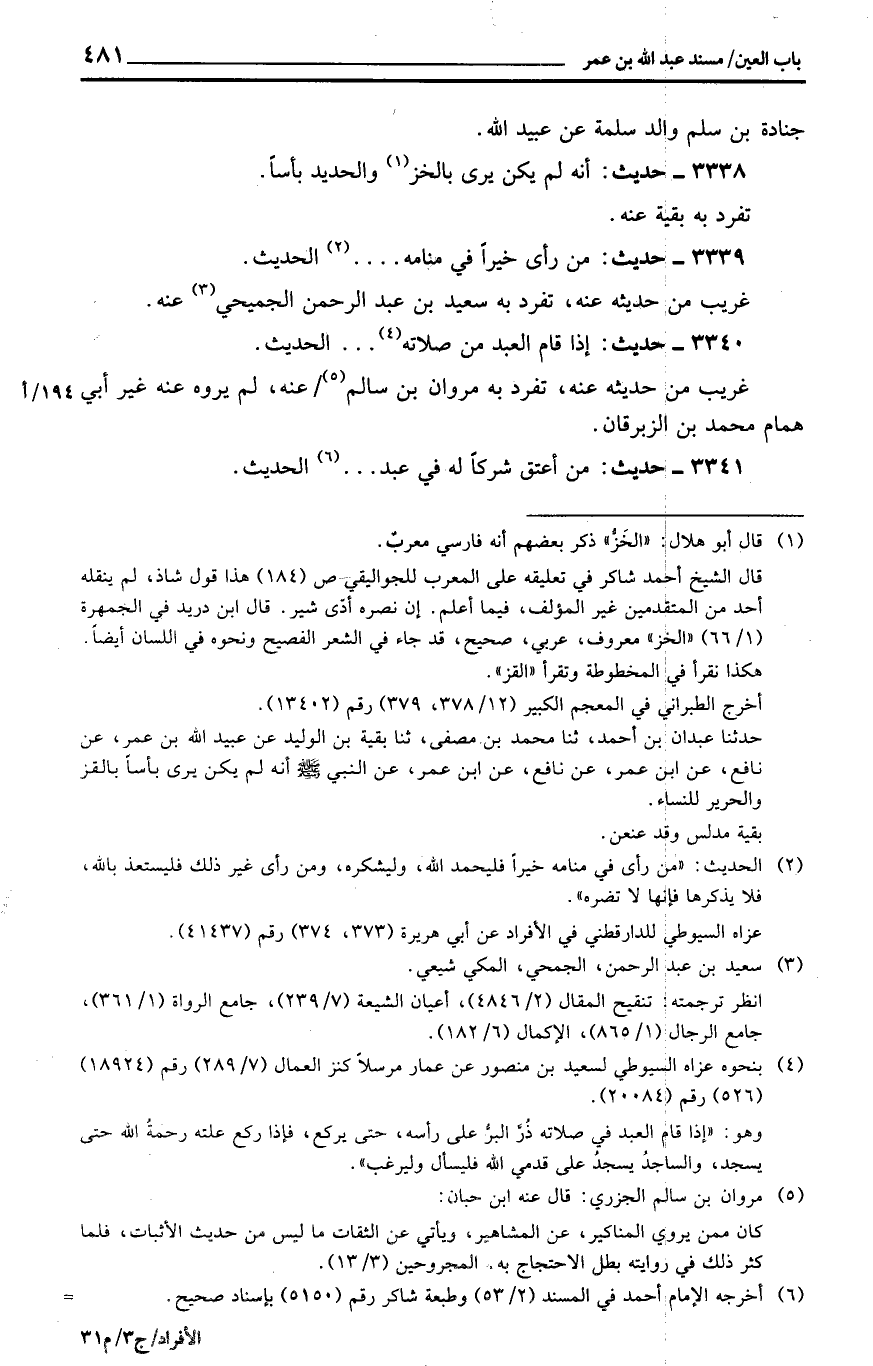 3338 - حَدِيث: أَنه لم يكن يرى بالخز وَالْحَدِيد بَأْسا.