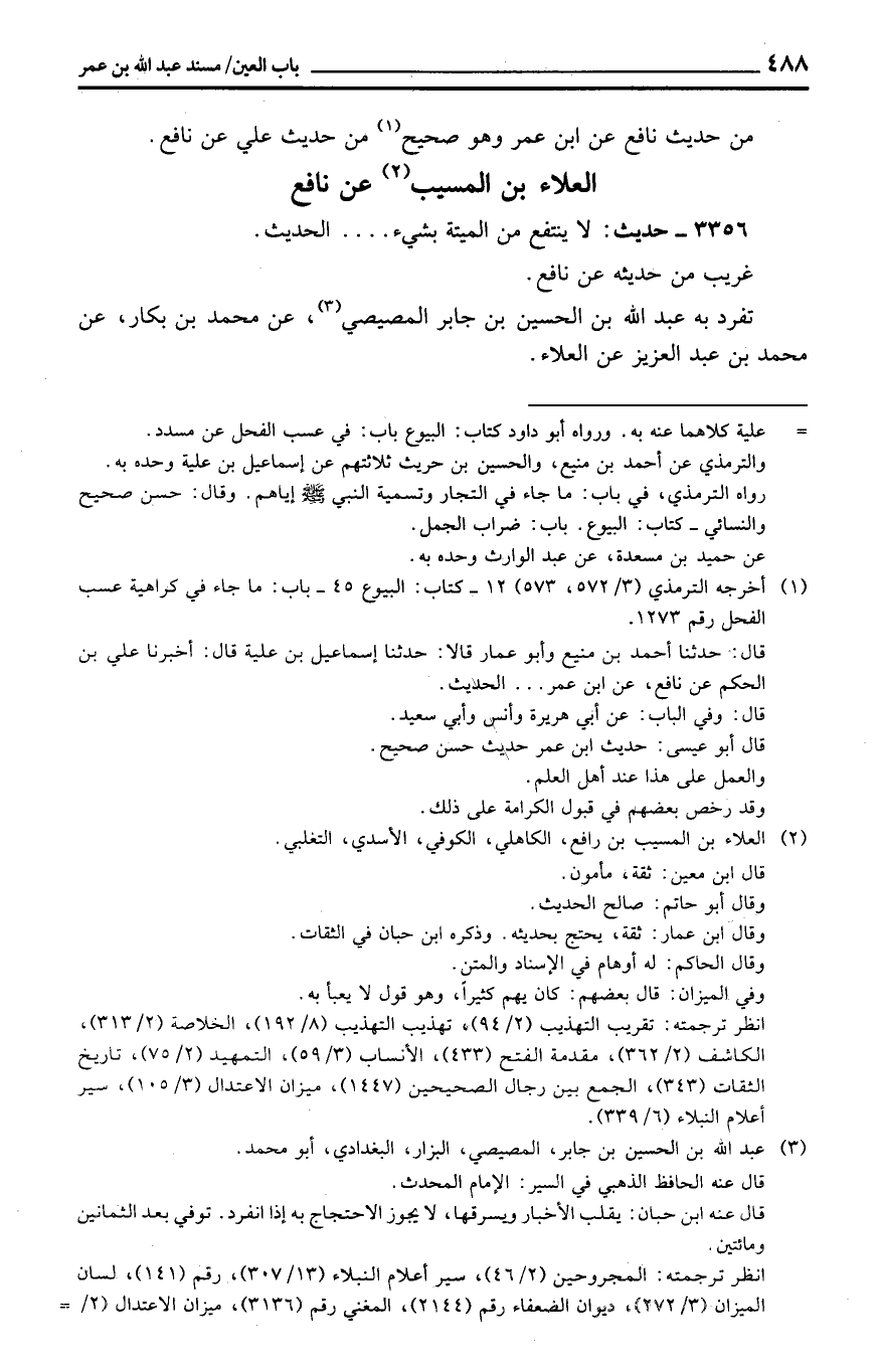 الْعَلَاء بن الْمسيب عَن نَافِع