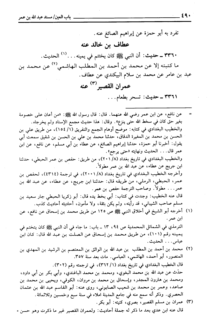 مَا كتبته إِلَّا عَن مُحَمَّد بن أَحْمد بن الْمطلب الْهَاشِمِي عَن مُحَمَّد بن عبد بن عَامر عَن مُحَمَّد بن سَلام البيكندي عَن عطاف.