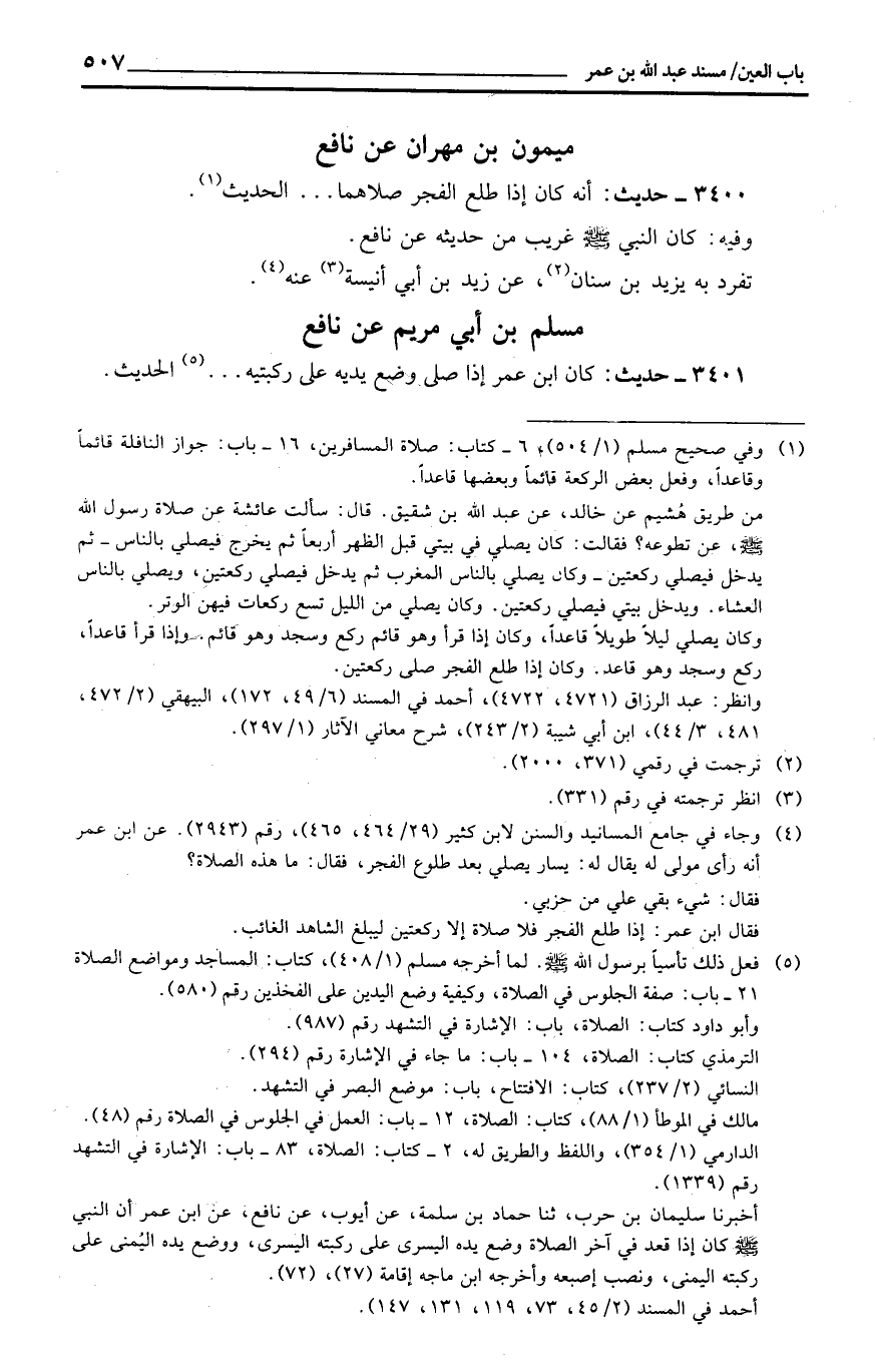 3401 - حَدِيث: كَانَ ابْن عمر إِذا صلى وضع يَدَيْهِ على رُكْبَتَيْهِ