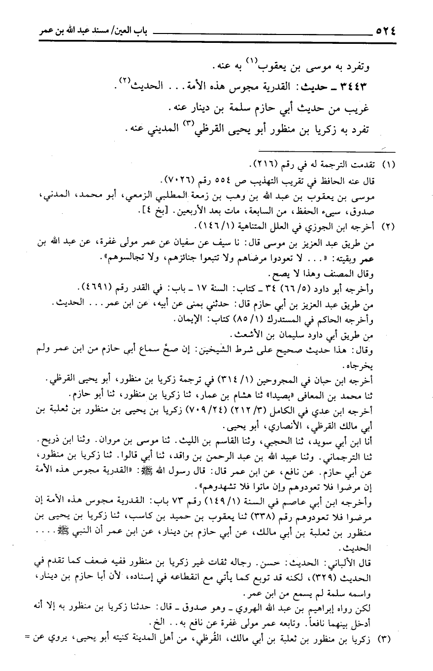 3443 - حَدِيث: الْقَدَرِيَّة مجوس هَذِه الْأمة ... الحَدِيث.