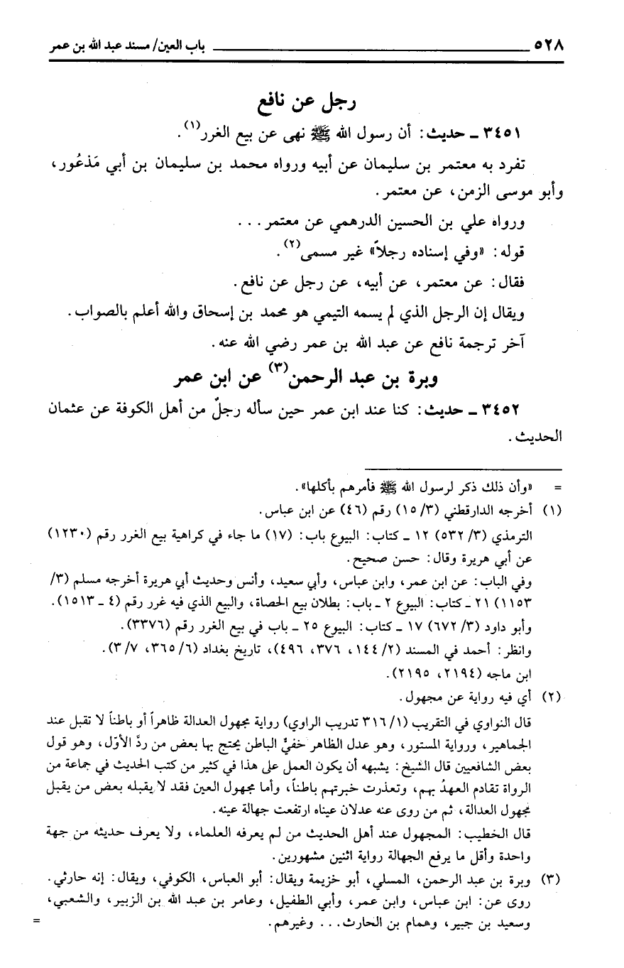 3451 - حَدِيث: أَن رَسُول الله نهى عَن بيع الْغرَر.