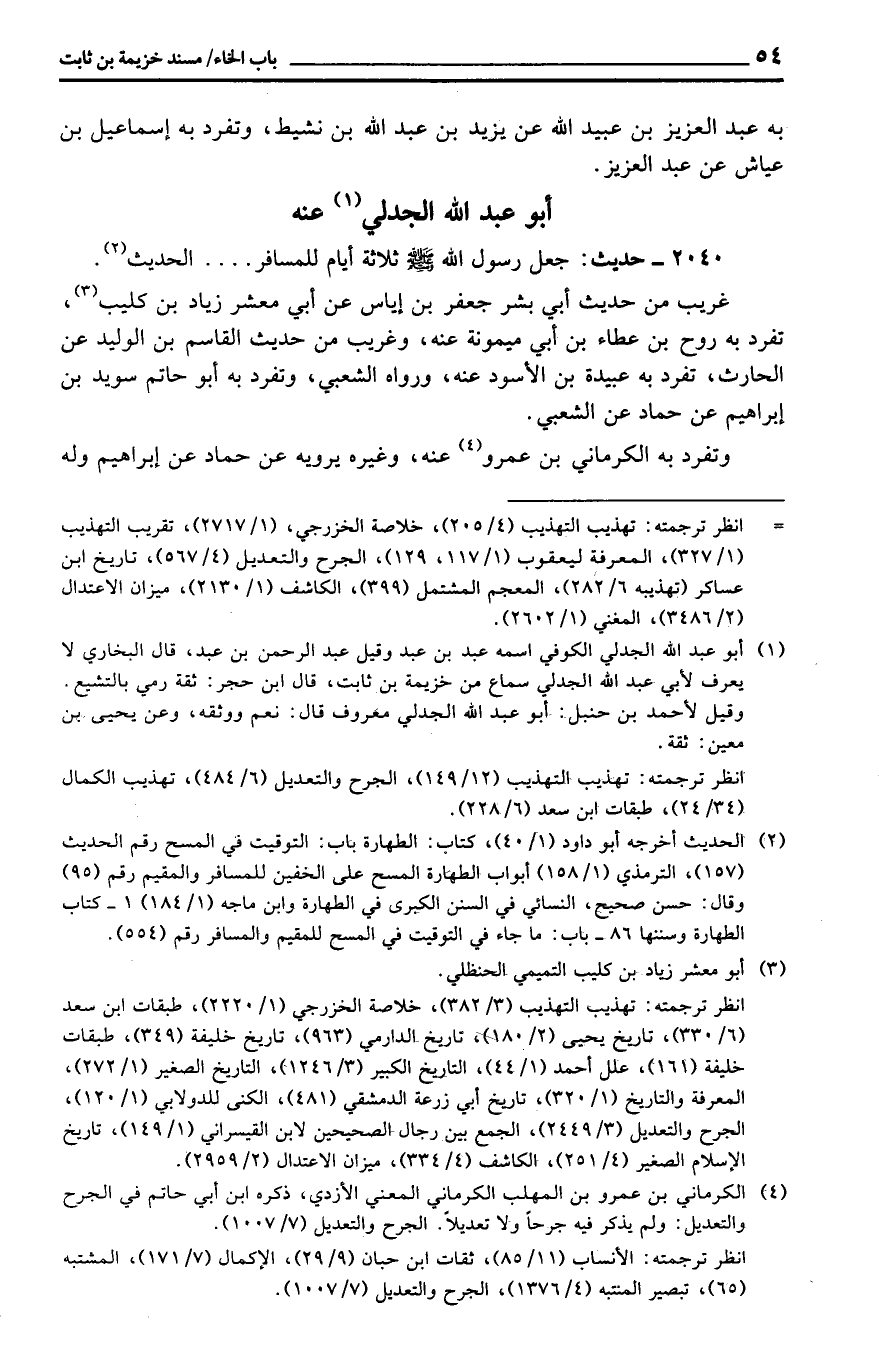 2040 - حَدِيث: جعل رَسُول الله ثَلَاثَة أَيَّام للْمُسَافِر ... الحَدِيث.