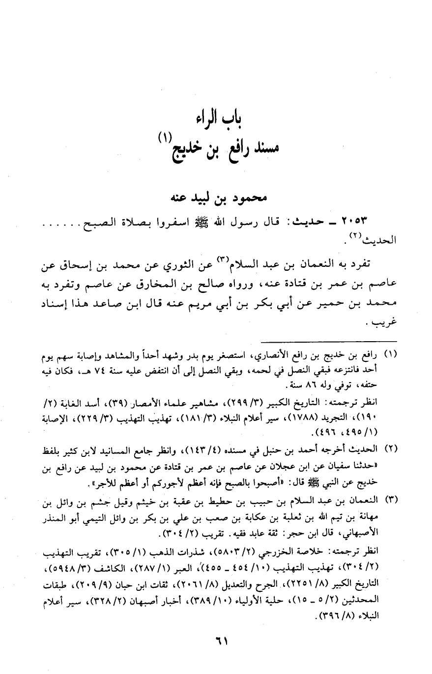 2053 - حَدِيث: قَالَ رَسُول الله اسفروا بِصَلَاة الصُّبْح ... الحَدِيث.