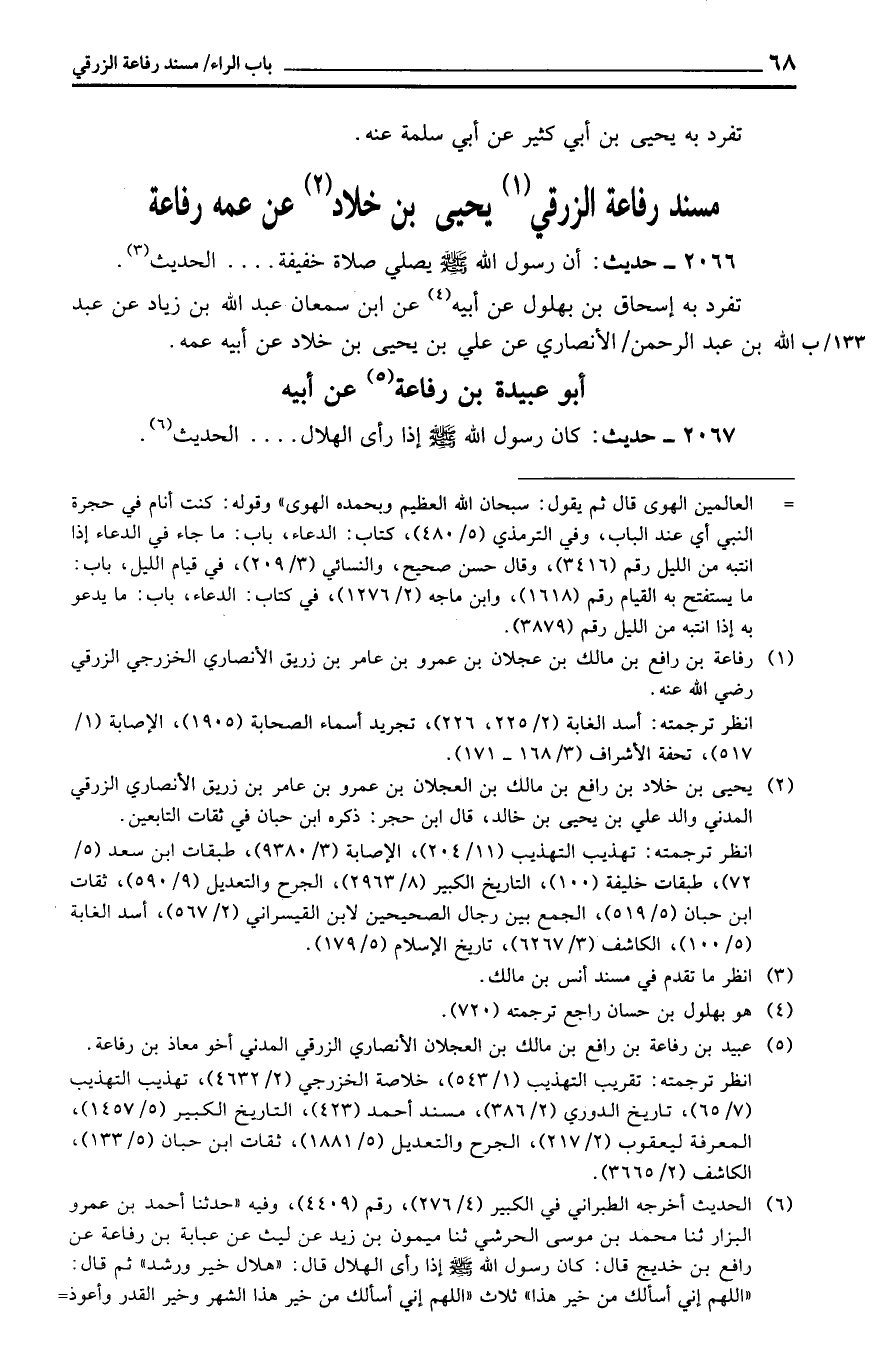 مُسْند رِفَاعَة الزرقي يحيى بن خَلاد عَن عَمه رِفَاعَة