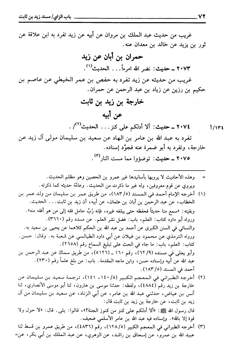 غَرِيب من حَدِيثه عَن زيد تفرد بِهِ حَفْص بن عمر الخيطي عَن عَاصِم بن حَكِيم بن رزين عَن زِيَاد بن عبد الرَّحْمَن عَن حمْرَان.