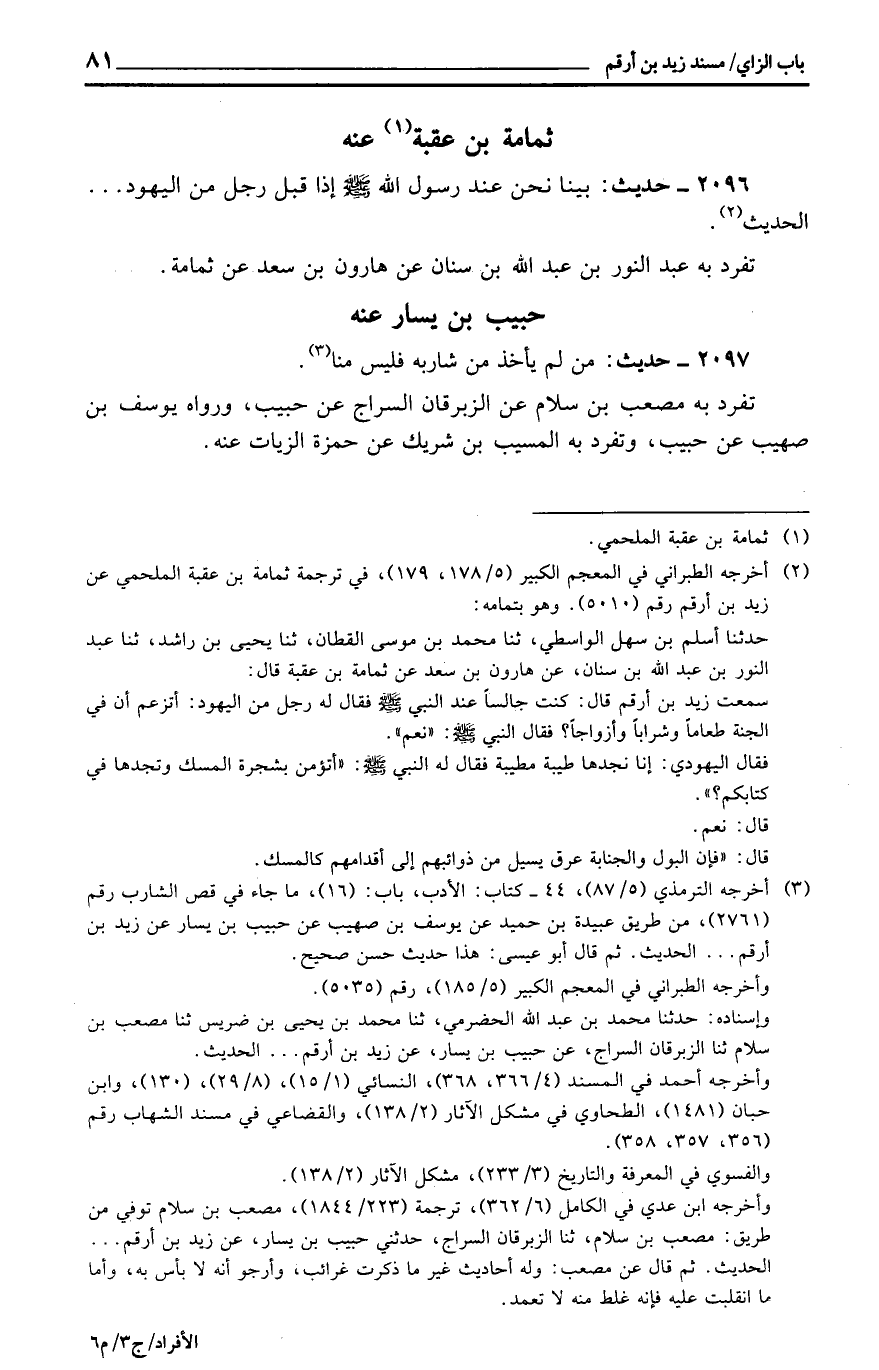 تفرد بِهِ مُصعب بن سَلام عَن الزبْرِقَان السراج عَن حبيب، وَرَوَاهُ يُوسُف بن صُهَيْب عَن حبيب، وَتفرد بِهِ الْمسيب بن شريك عَن حَمْزَة الزيات عَنهُ.