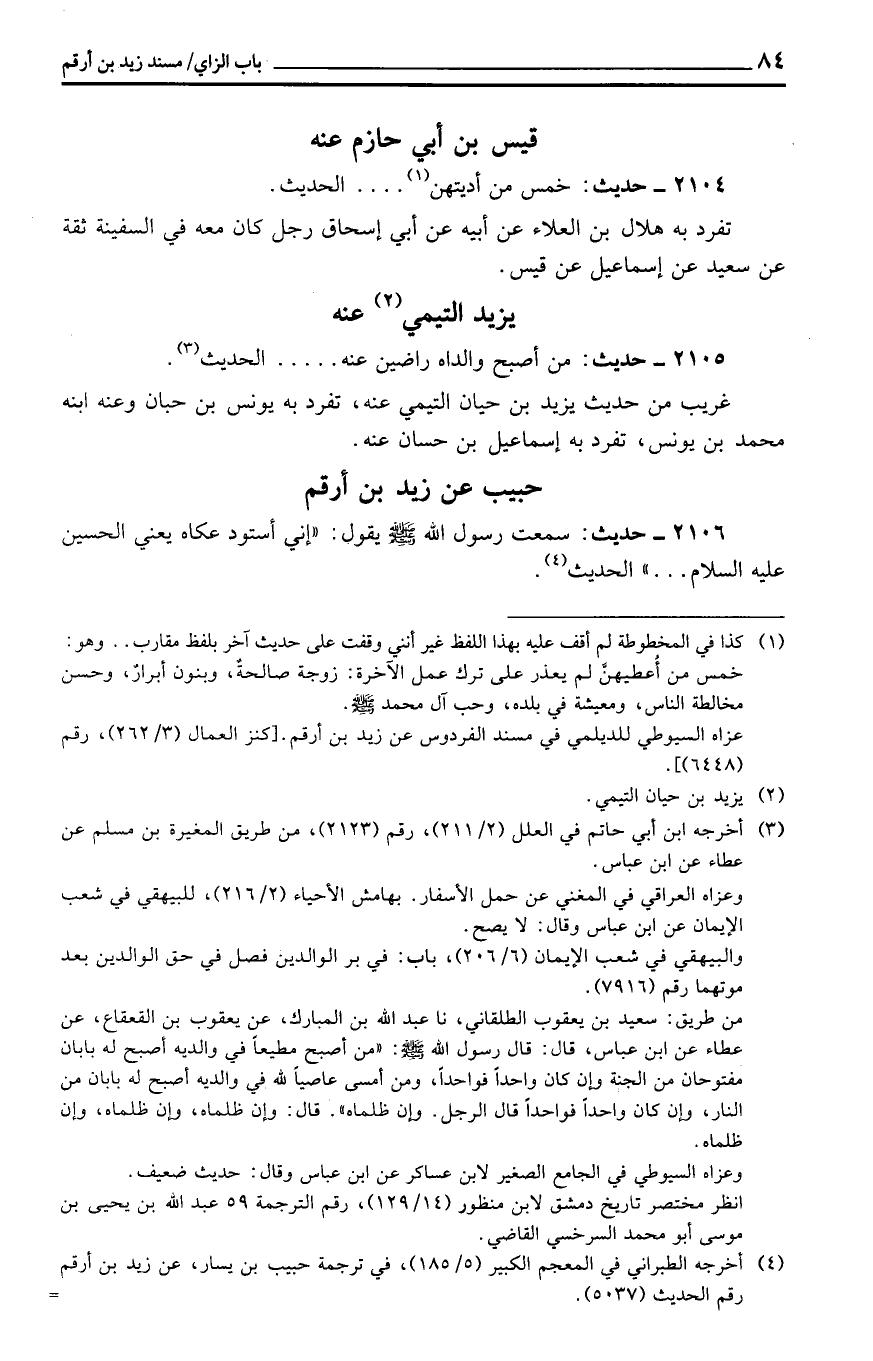 حبيب عَن زيد بن أَرقم